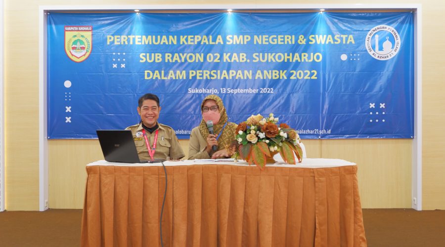 Pada hari Selasa, 13 September 2022 SMP Islam 21 Solo Baru menjadi tuan rumah pertemuan Kepala Sekolah MKKS Sub Rayon 02. Agenda pertemuan yaitu konsolidasi kegiatan Sub Rayon 02 dan persiapan menjelang ANBK yang diselenggarakan pada tanggal 21-22 September 2022. Pertemuan dilaksanakan di Aula Masjid Raya Al Azhar Solo Baru dan dihadiri 18 Kepala Sekolah dari 24 sekolah yang tergabung dalam Sub Rayon 02. Sekolah yang menjadi anggota Sub Rayon 02...Read More